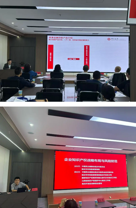 在专题分享环节,中国银行临汾分行相关负责人围绕“知识产权质押融资政策与实务操作”展开讲解,系统介绍政策支持、融资流程、评估要点与风控措施。知识产权专家则就“企业知识产权战略布局与风险防范”进行深入阐述,结合典型案例,为企业提供系统性知识产权规划与风险防控的实操指南,内容充实,启发性强。